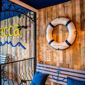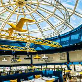 Аутентичный интерьер с прозрачным куполом-потолком, подвешенной лодкой с рыбками, оформленными в плакаты цитатами знаменитостей о еде и уютными столиками с мягкими диванчиками мгновенно переносит гостей на побережье Черного моря. Для малышей на первом этаже кафе работает детский уголок: дети заняты игрой, а взрослые могут спокойно беседовать с друзьями или наслаждаться поданными кулинарными изысками.